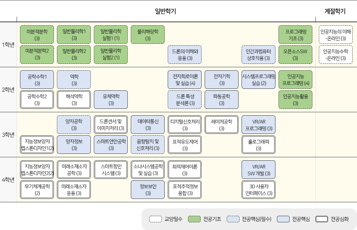 국방지능정보융합학부 세부 전공의 개편 교과 이수 체계도